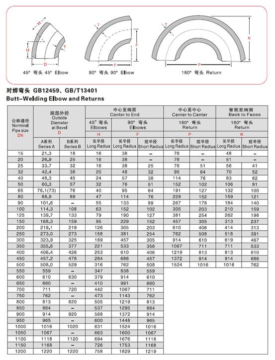 彎頭特點:彎頭是改變管路方向的管件。按角度分,有45°及90°180°三種最常用的,另外根據工程需要還包括60°等其他非正常角度彎頭。彎頭的材料有鑄鐵、不銹鋼、合金鋼、可鍛鑄鐵、碳鋼、有色金屬及塑料等。與管子連接的方式有:直接焊接(最常用的方式)法蘭連接、熱熔連接、電熔連接、螺紋連接及承插式連接等。按照生產工藝可分為:焊接彎頭、沖壓彎頭、推制彎頭、鑄造彎頭、對焊彎頭等。其他名稱:90度彎頭、直角彎、愛而彎等。